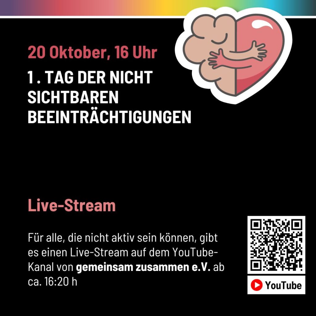 Der Verein „gemeinsam zusammen e.V.“ möchte daran etwas ändern und ruft daher zur Unterstützung für die Anerkennung des 20. Oktobers zum Tag der nicht sichtbaren Beeinträchtigungen auf.